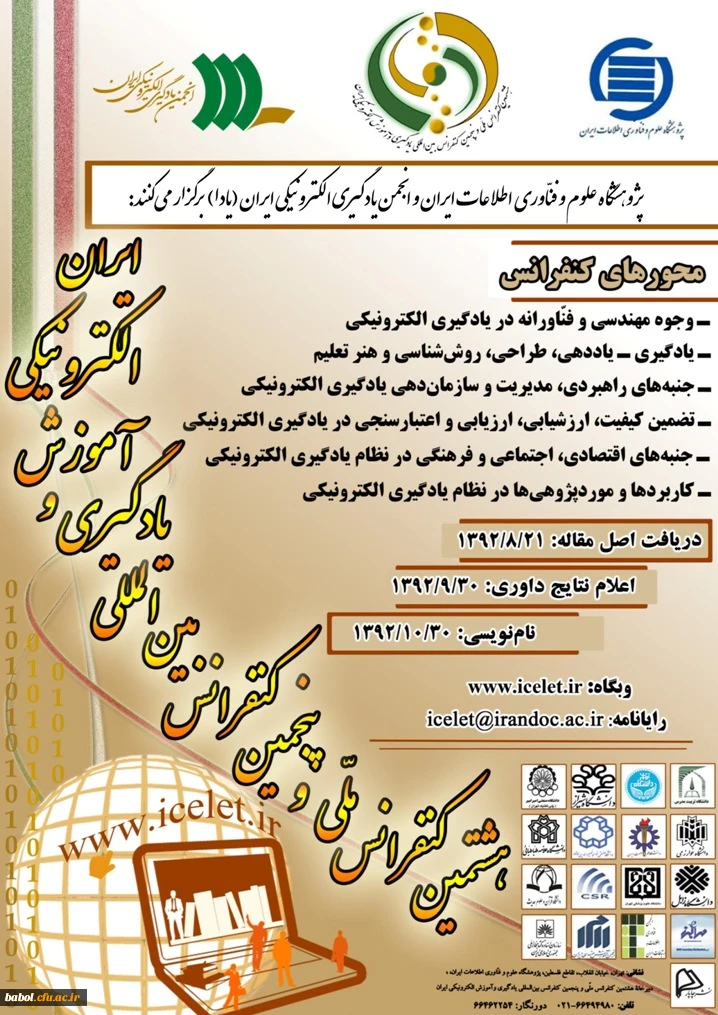 امتیاز دهید : هشتمین کنفرانس ملی و پنجمین کنفرانس بین المللی یادگیری و آموزش الکترونیکی ایران جمعه 17 آبان 1392 ساعت 21:41
