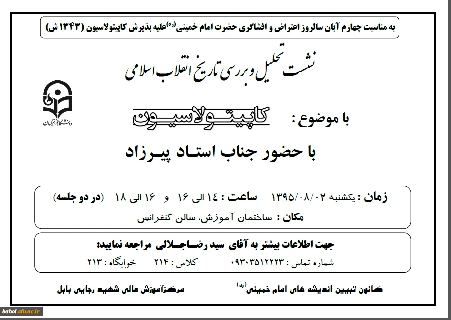 امتیاز دهید : برگزاری نشست تحلیل و بررسی تاریخ انقلاب اسلامی با موضوع کاپیتولاسیون 2 چهارشنبه 28 مهر 1395 ساعت 15:56