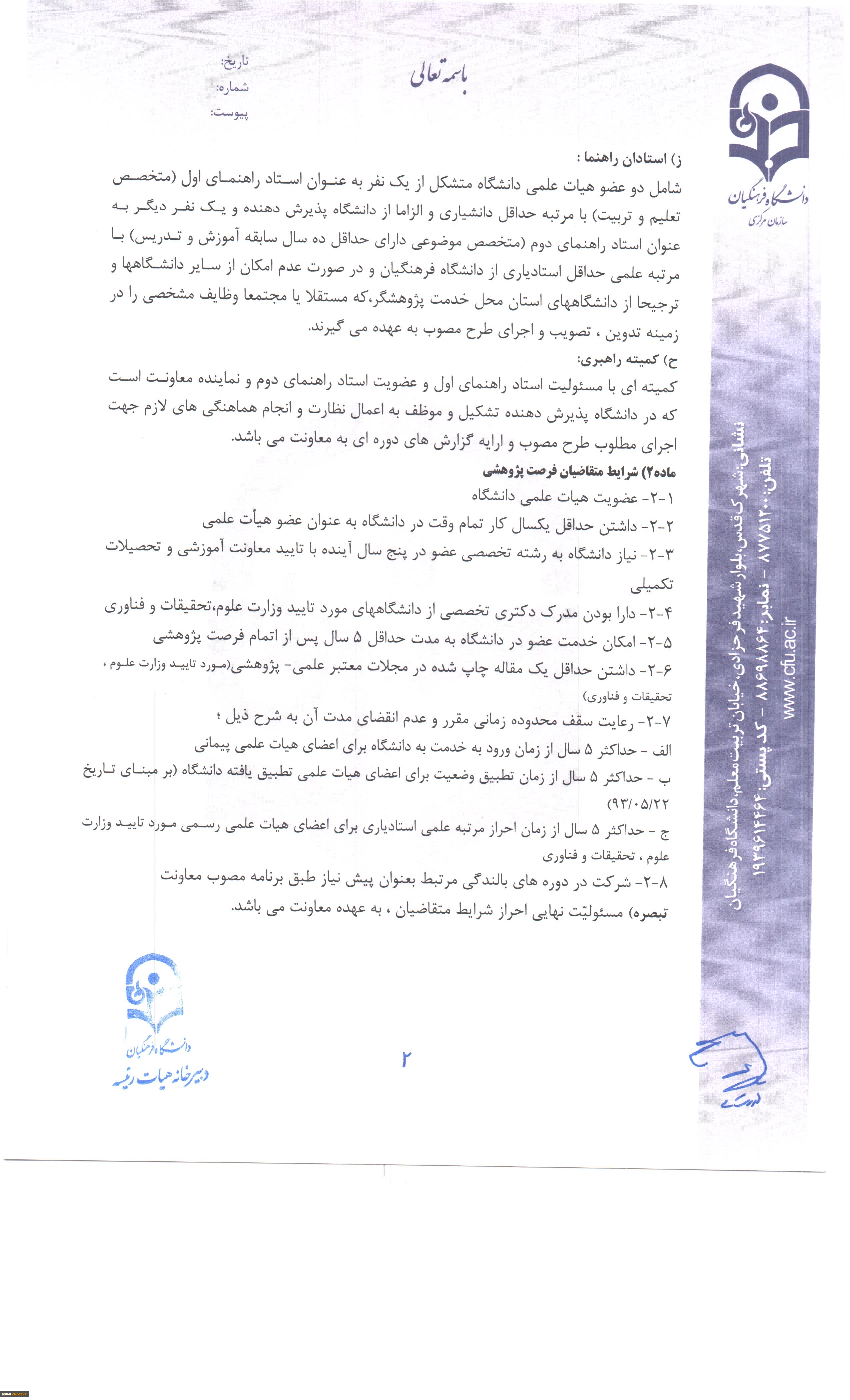 شیوه نامه اعطای فرصت پژوهشی تربیت حرفه ای  اعضای هیات علمی دانشگاه فرهنگیان