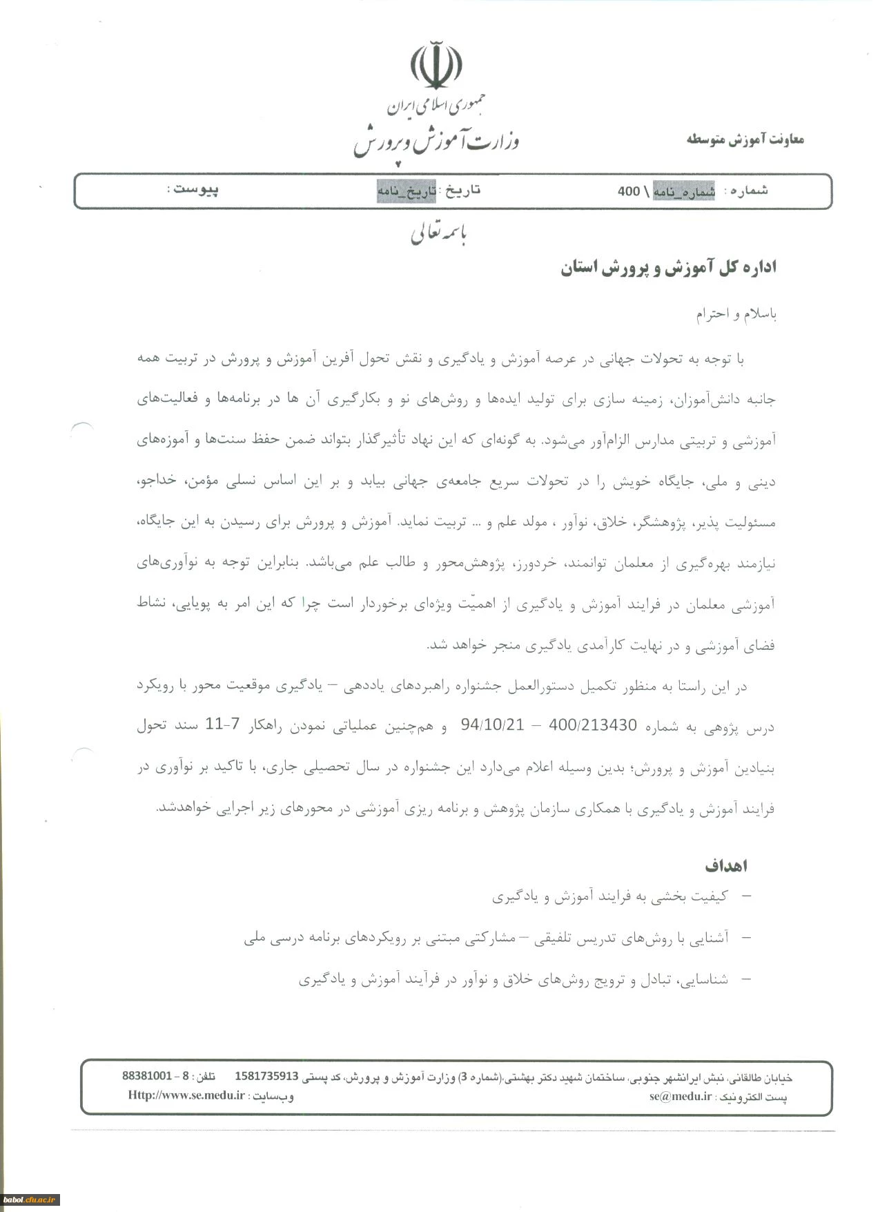 دستورالعمل جشنواره نوآوری در فرایند آموزش و یادگیری