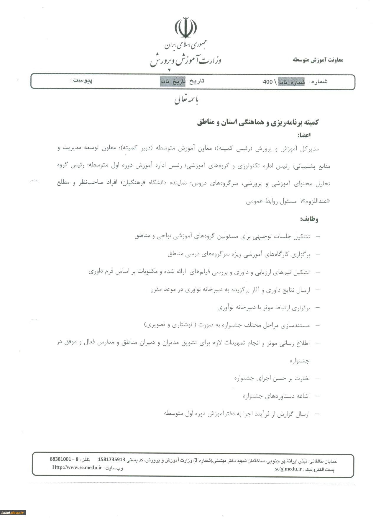دستورالعمل جشنواره نوآوری در فرایند آموزش و یادگیری