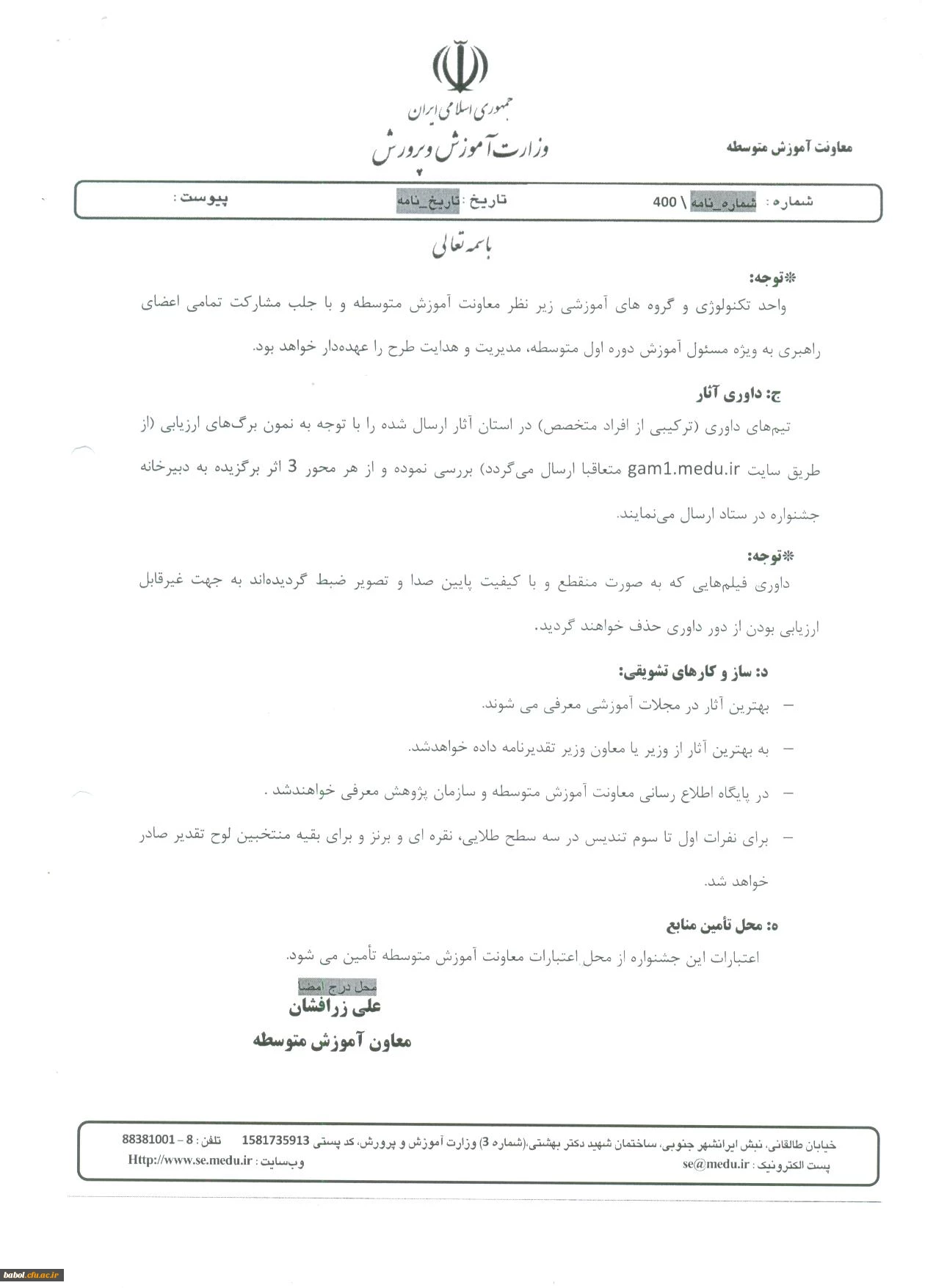 دستورالعمل جشنواره نوآوری در فرایند آموزش و یادگیری