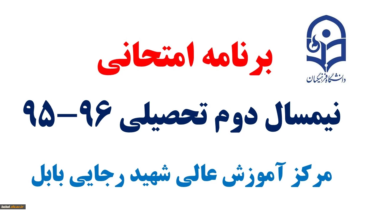 برنامه امتحانی نیمسال دوم تحصیلی 96-95 دانشجو معلمان مرکز آموزش عالی شهید رجایی بابل