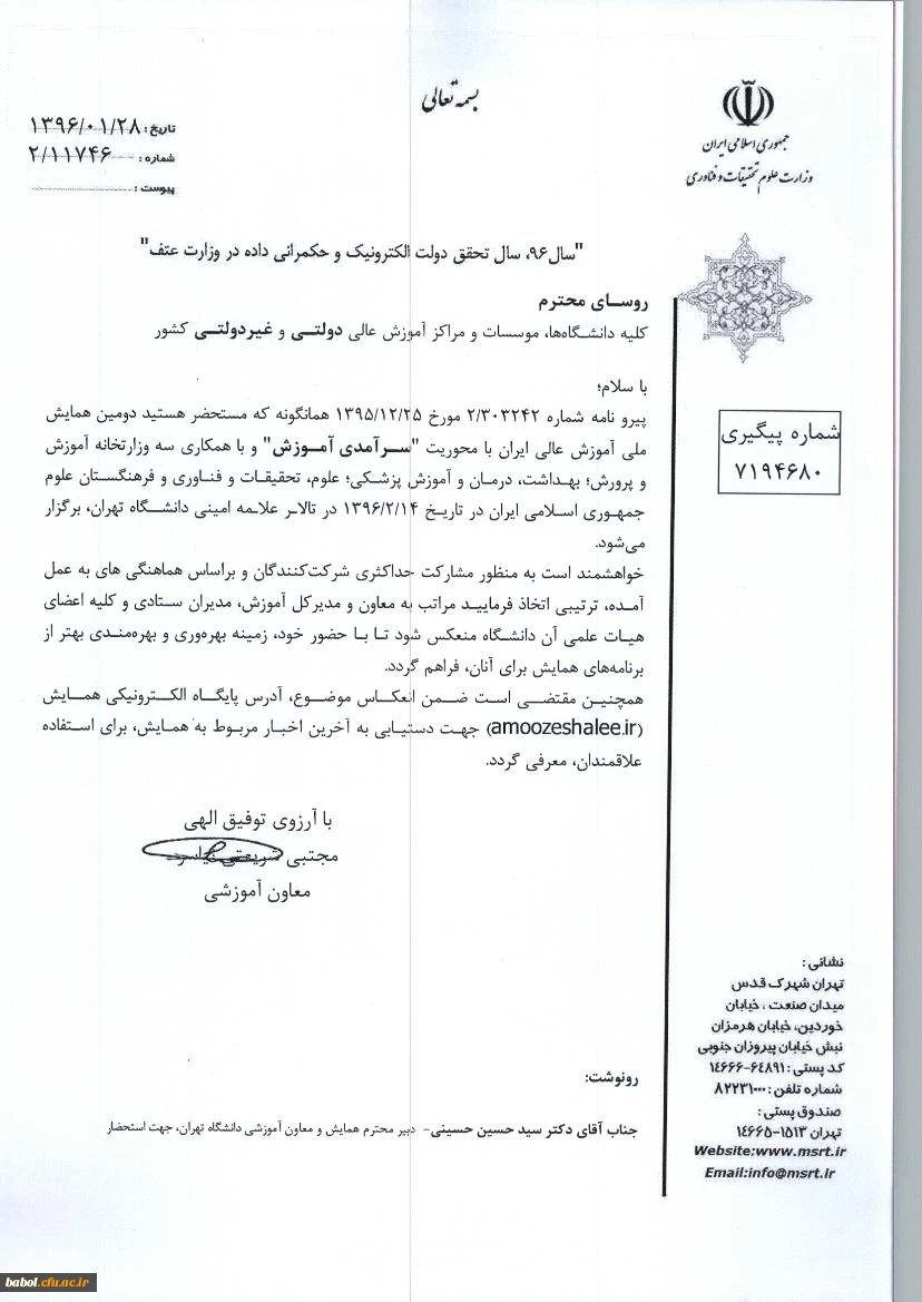 امتیاز دهید : دومین همایش ملی آموزش عالی ایران ویژه اعضای هیات علمی چهارشنبه 6 اردیبهشت 1396 ساعت 15:23