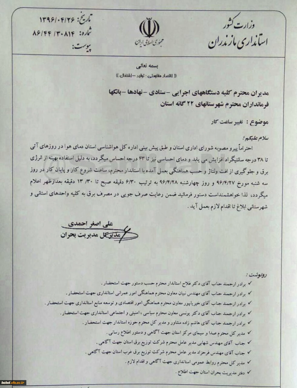 تغییر ساعات کار کارمندان دانشگاه فرهنگیان استان مازندران