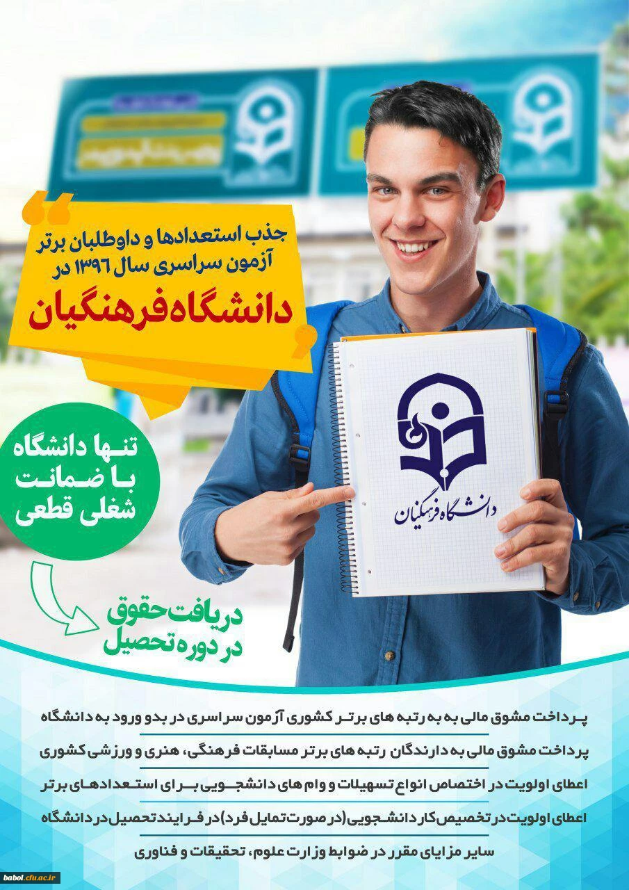 امتیاز دهید : جذب استعدادها و داوطلبان برترآزمون سراسری سال 1396 در دانشگاه فرهنگیان چهارشنبه 18 مرداد 1396 ساعت 8:57