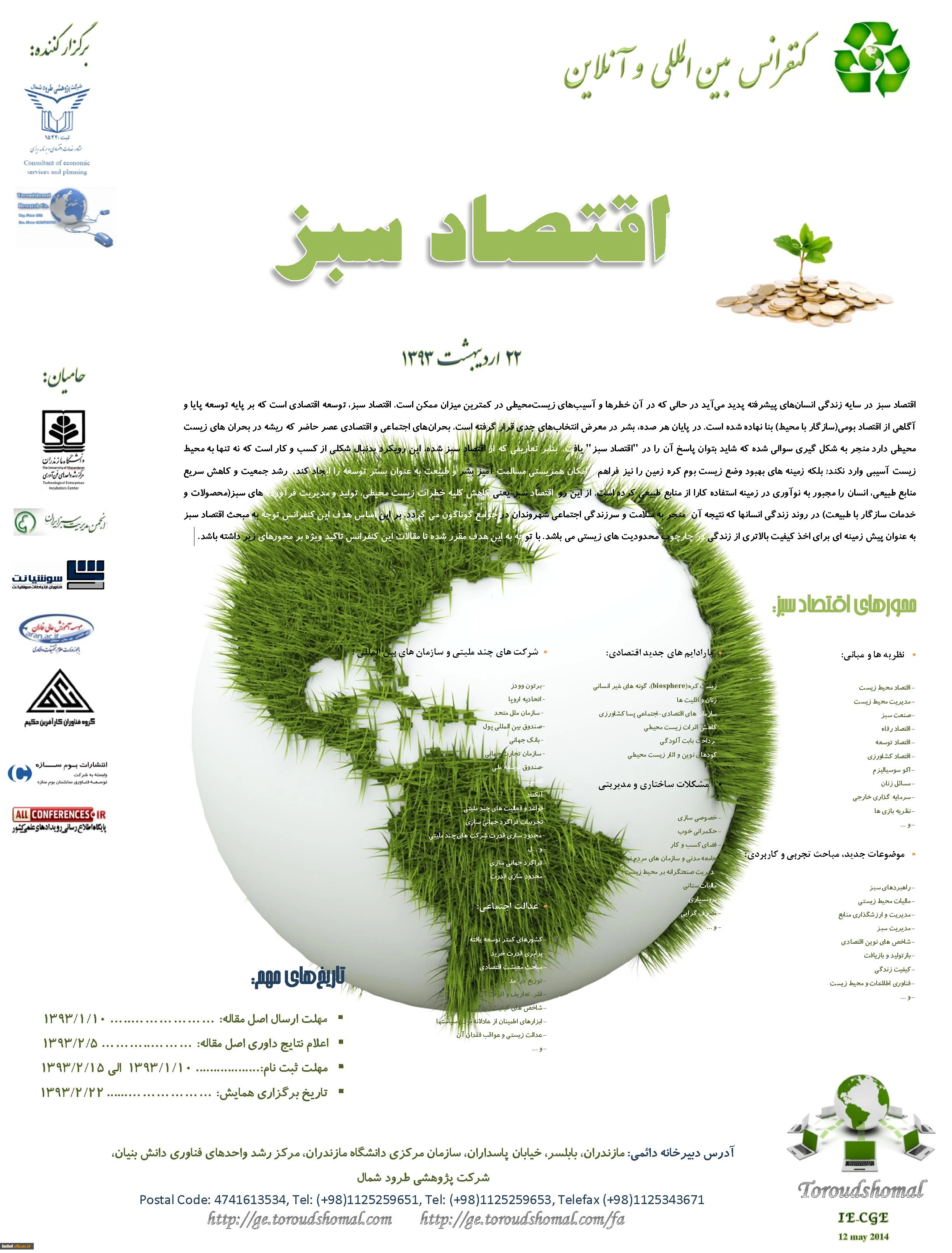 کنفرانس بین المللی و آنلاین اقتصاد سبز 22 اردیبهشت 1393 International E-Conference on Green Economics 12 may 2014