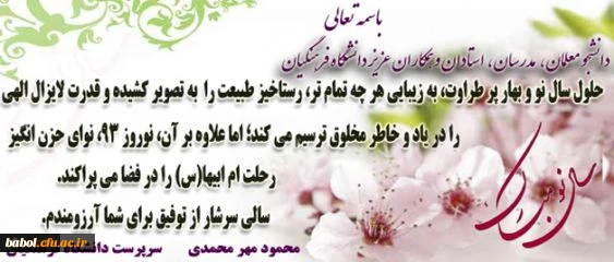 پیام سرپرست محترم دانشگاه فرهنگیان، دکتر مهر محمدی به مناسبت نوروز 93 دانشگاه فرهنگیان، از جلوه های بارز بهار است،