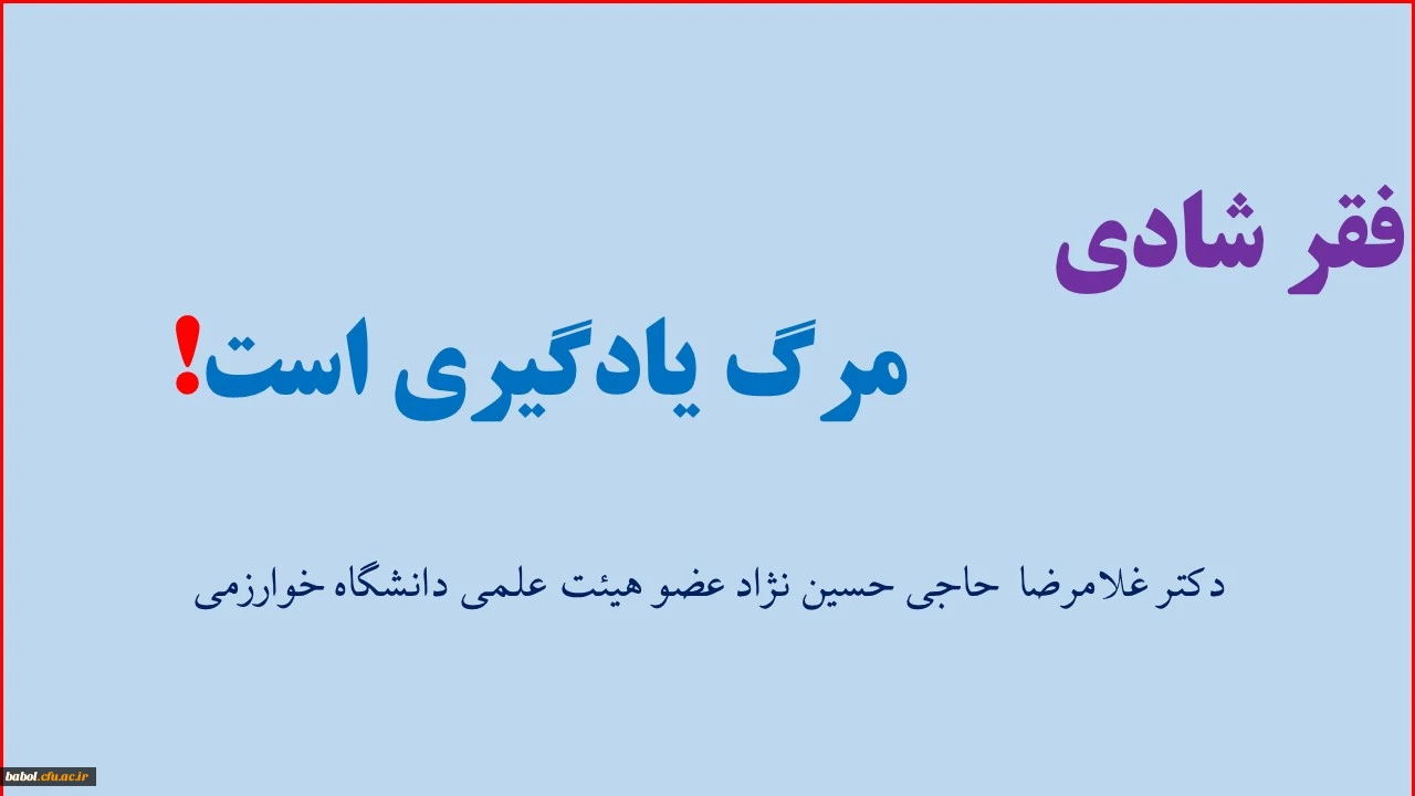 فقر شادی مرگ یادگیری است! از دکتر حاجی حسین نژاد عضو هیات علمی دانشگاه خوارزمی