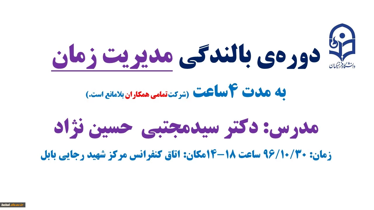دوره بالندگی مدیریت زمان ویژه همکاران محترم اداری و خدماتی