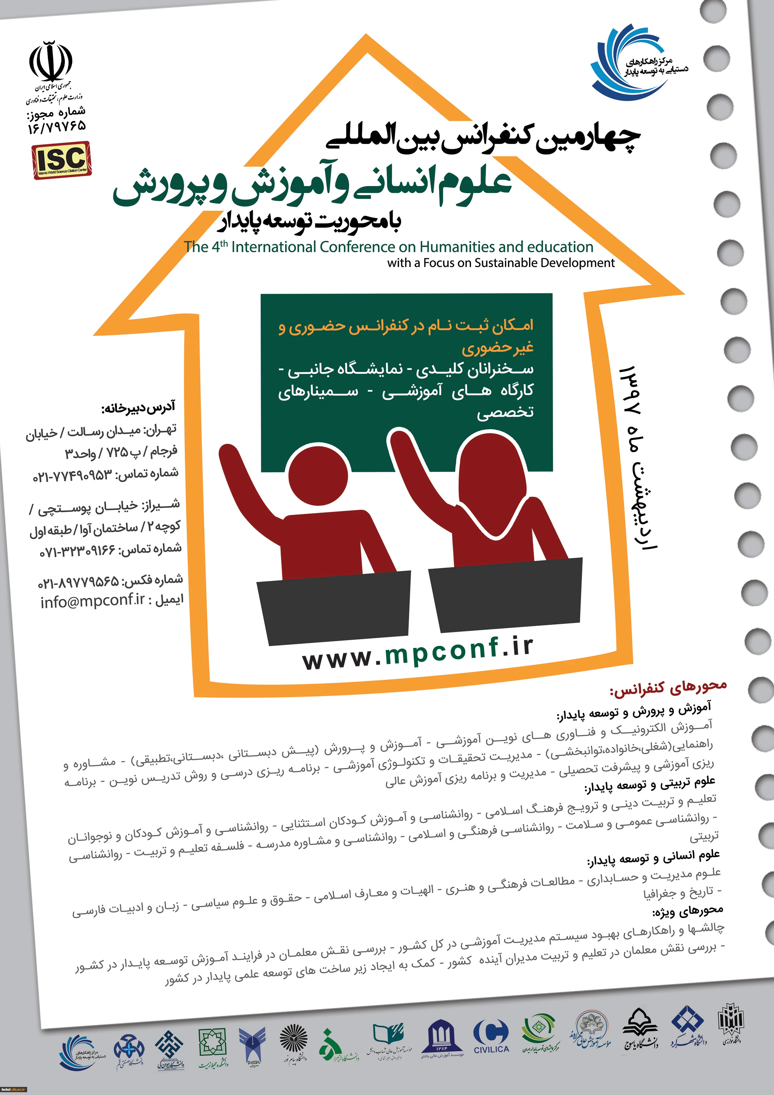 امتیاز دهید : چهارمین کنفرانس بین المللی علوم انسانی آموزش و پرورش با محوریت توسعه پایدار شنبه 21 بهمن 1396 ساعت 9:07