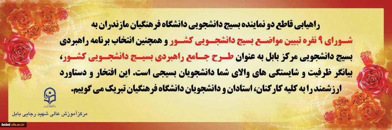راهیابی دو نفراز دانشجو معلمان بسیجی در شورای دانشجویی و انتخاب طرح خلاقانه بسیج دانشجویی مرکز شهید رجایی بابل بعنوان طرح برتر بسیج دانشگاه فرهنگیان