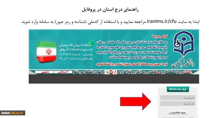 درج استان در پروفایل جهت اخذ گواهی دوره های 52 ساعته