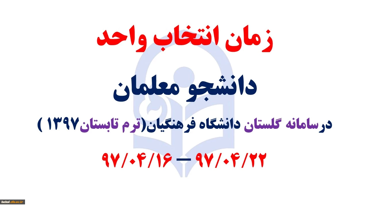 امتیاز دهید : زمان انتخاب واحد دانشجومعلمان در سامانه گلستان(ویژه ترم تابستان 97) یکشنبه 17 تیر 1397 ساعت 10:59