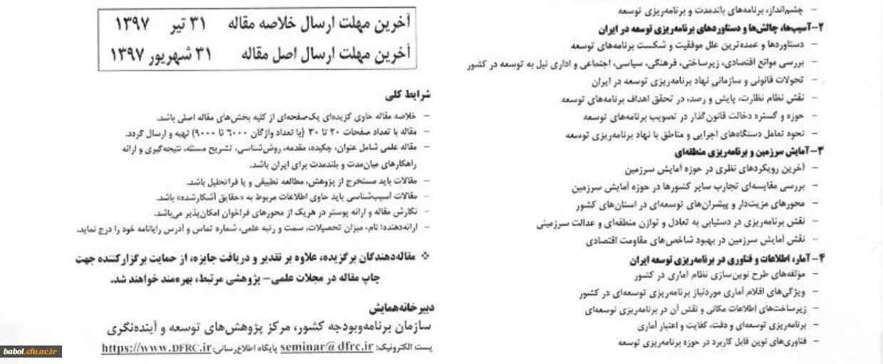 فراخوان همایش ملی هفتاد سال برنامه ریزی توسعه در ایران