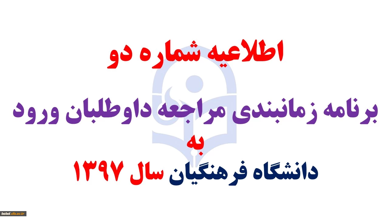 اطلاعیه شماره (۲): برنامه زمانبندی مراجعه داوطلبان ورود به دانشگاه فرهنگیان سال ۱۳۹۷ اطلاعیه شماره (۲): برنامه زمانبندی مراجعه داوطلبان ورود به دانشگاه فرهنگیان سال ۱۳۹۷ معاونت پژوهش و برنامه ریزی آموزش و پرورش مازندران اطلاعیه برنامه زمانبندی مراجعه