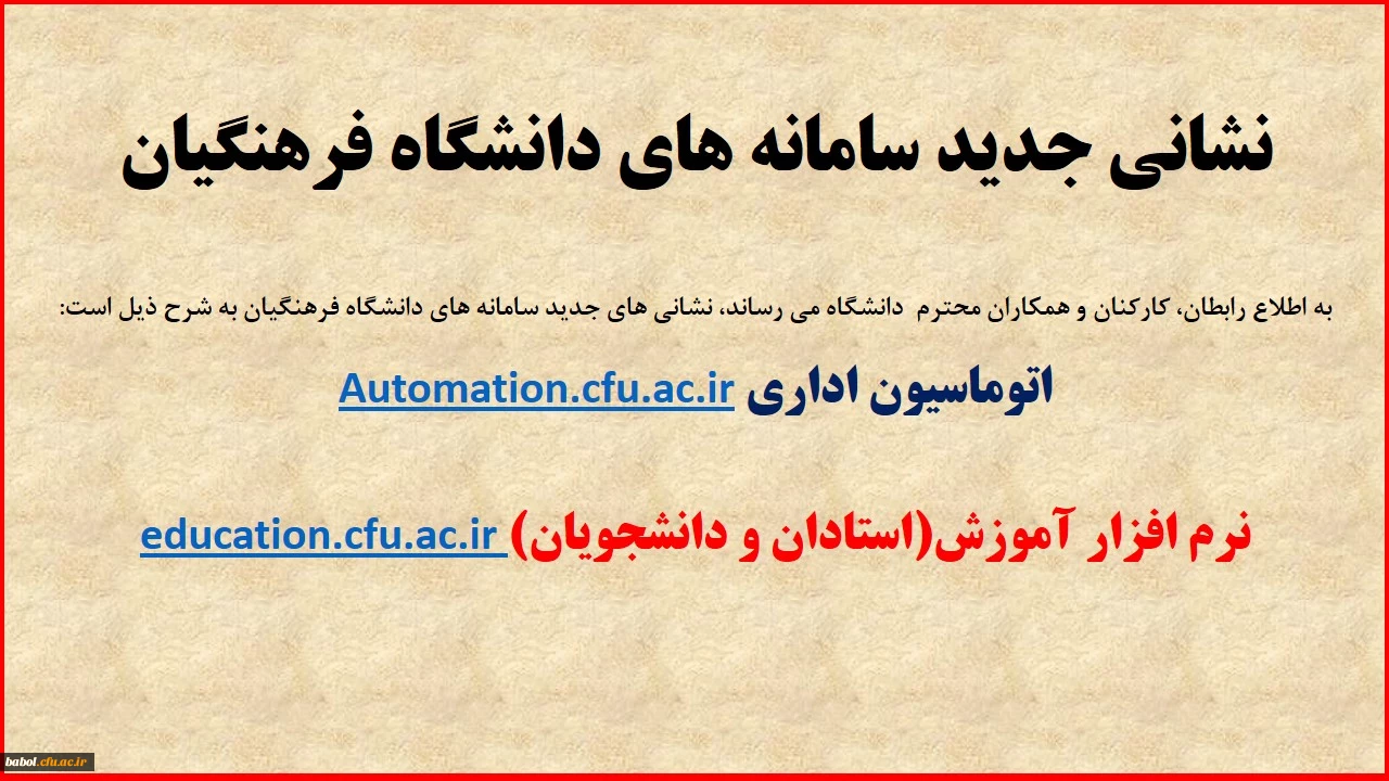 نشانی جدید سامانه های دانشگاه فرهنگیان