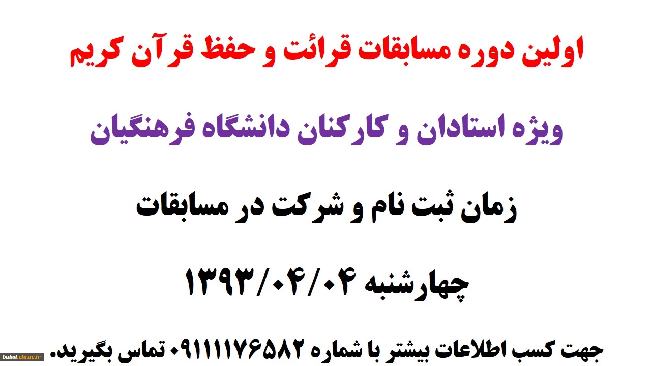 امتیاز دهید : اولین دوره مسابقات قرائت و حفظ قرآن کریم ویژه استادان و کارکنان دانشگاه فرهنگیان دوشنبه 2 تیر 1393 ساعت 7:56