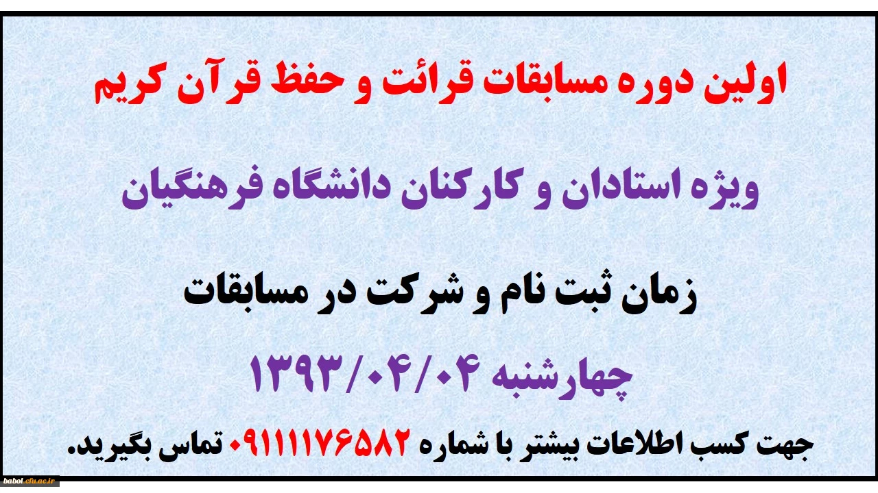اولین دوره مسابقات قرائت و حفظ قرآن کریم ویژه استادان و کارکنان دانشگاه فرهنگیان