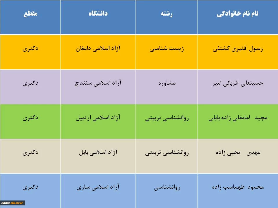 افتخارآفرینان مرکز در مقطع دکتری