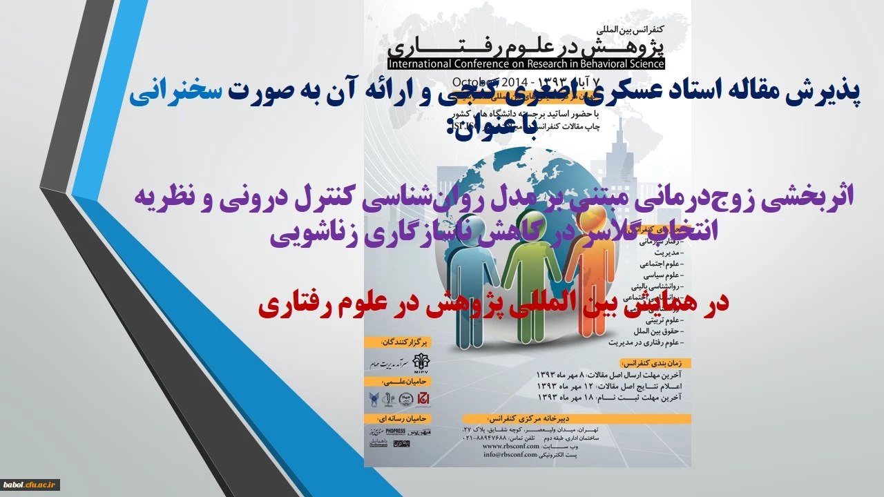 پذیرش مقاله استاد عسکری اصغری گنجی و ارائه آن به صورت سخنرانی در همایش بین المللی پژوهش در علوم رفتاری