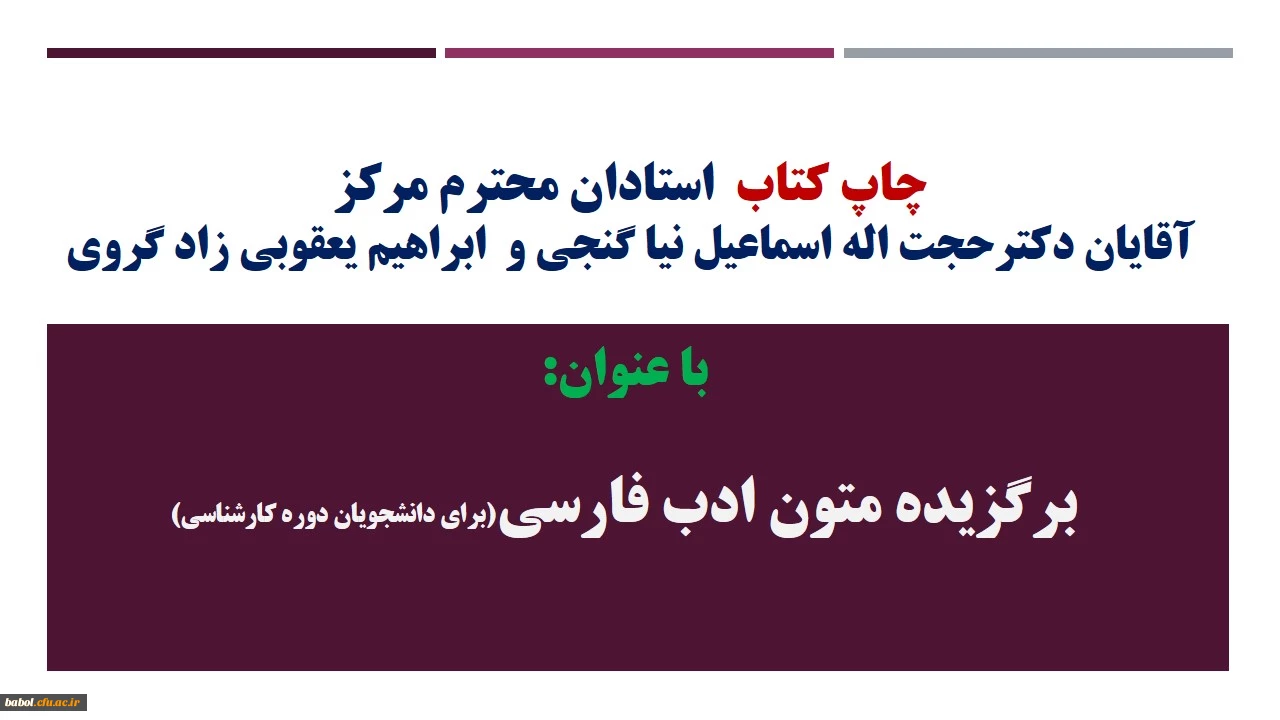 چاپ کتاب استادان محترم مرکز آقایان دکترحجت اله اسماعیل نیا گنجی و ابراهیم یعقوبی زاد گروی