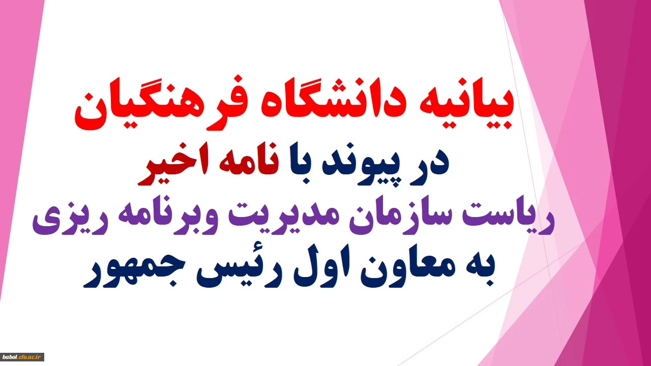 بیانیه دانشگاه فرهنگیان در پیوند با نامه اخیر ریاست سازمان مدیریت وبرنامه ریزی به معاون اول رئیس جمهور:
