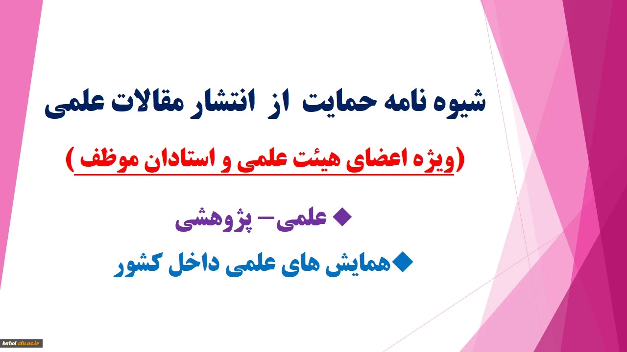 امتیاز دهید : شیوه نامه حمایت از انتشار مقالات علمی (ویژه استادان موظف و اعضای هیئت علمی) پنجشنبه 2 بهمن 1393 ساعت 12:15