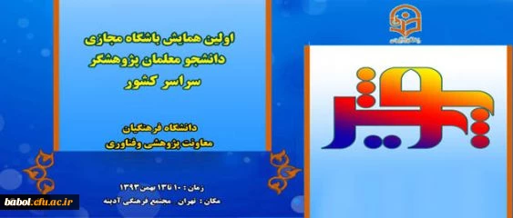 امتیاز دهید : اولین همایش پویش ( ویژه دانشجو معلمان پژوهشگر دانشگاه فرهنگیان) دوشنبه 6 بهمن 1393 ساعت 9:49