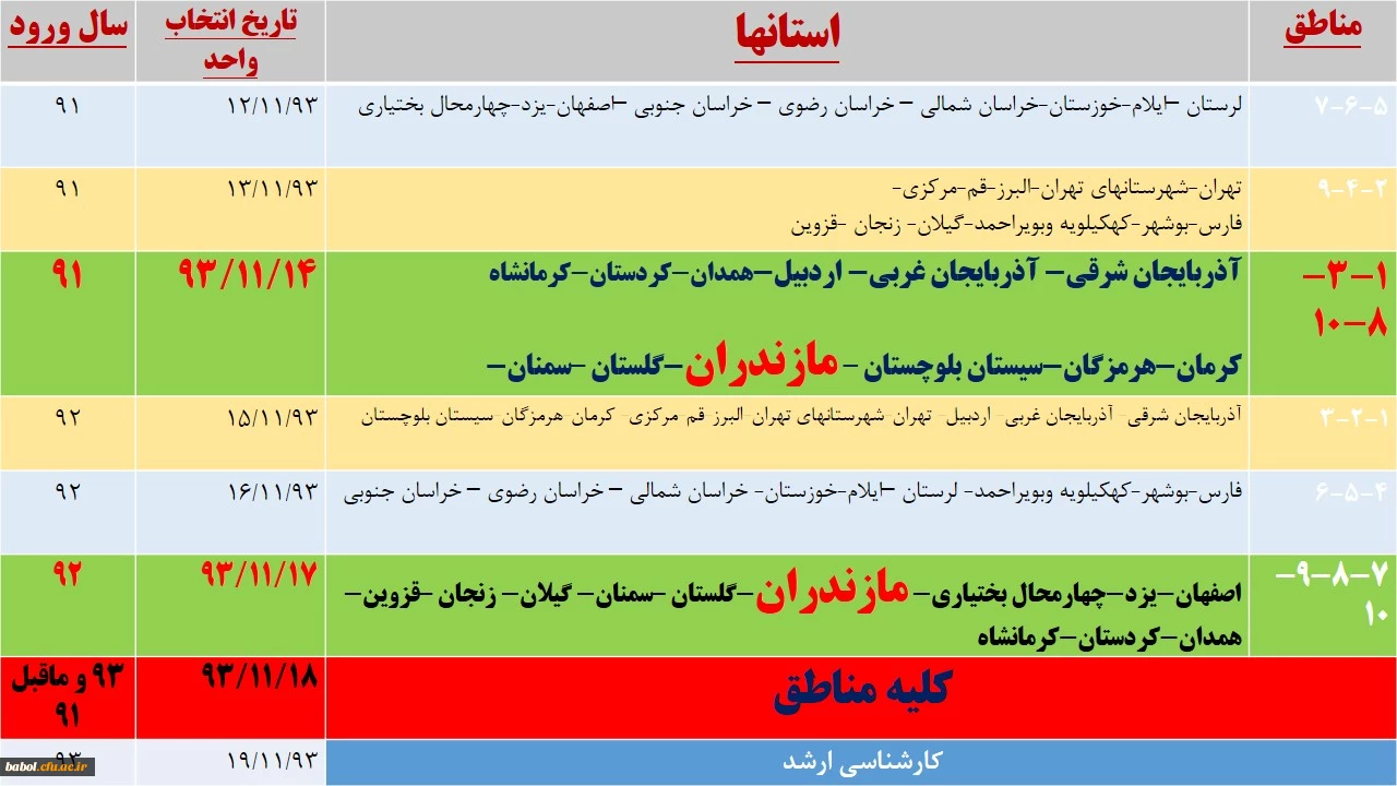 جدول زمانبندی انتخاب واحد نیمسال دوم سال تحصیلی 94-93 دانشجویان( پیوسته و ناپیوسته)مرکز