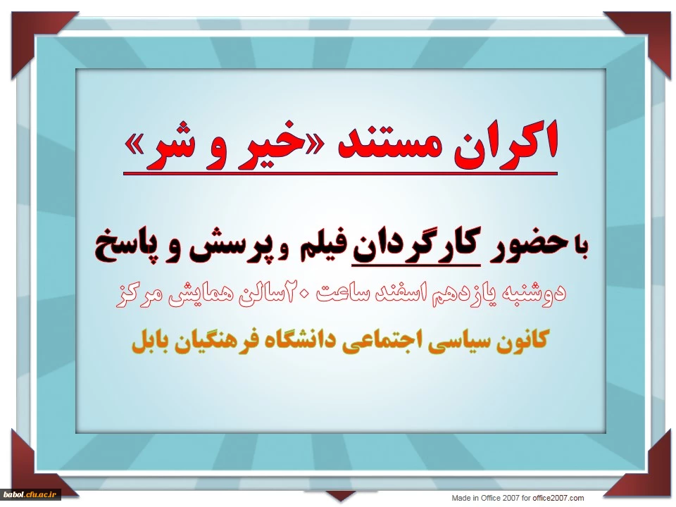اکران مستند «خیر و شر» با حضور کارگردان فیلم
